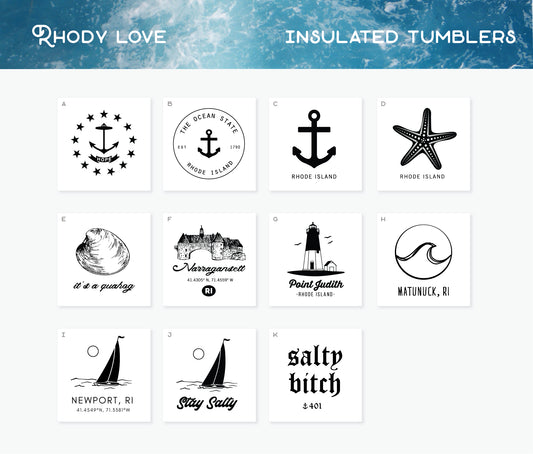 Products made in Rhode Island, for all lovers of the Ocean State. Designed and laser-engraved by Sarah Tomasso.