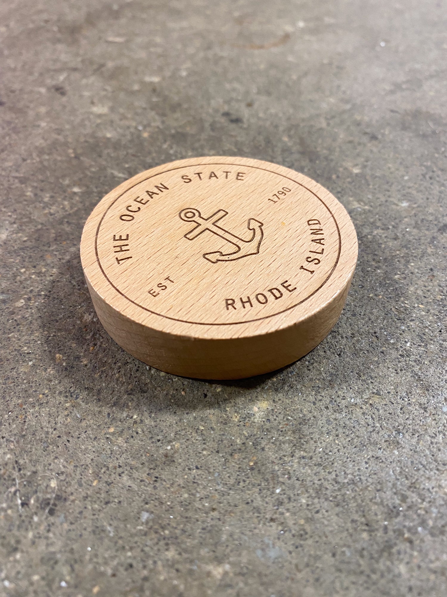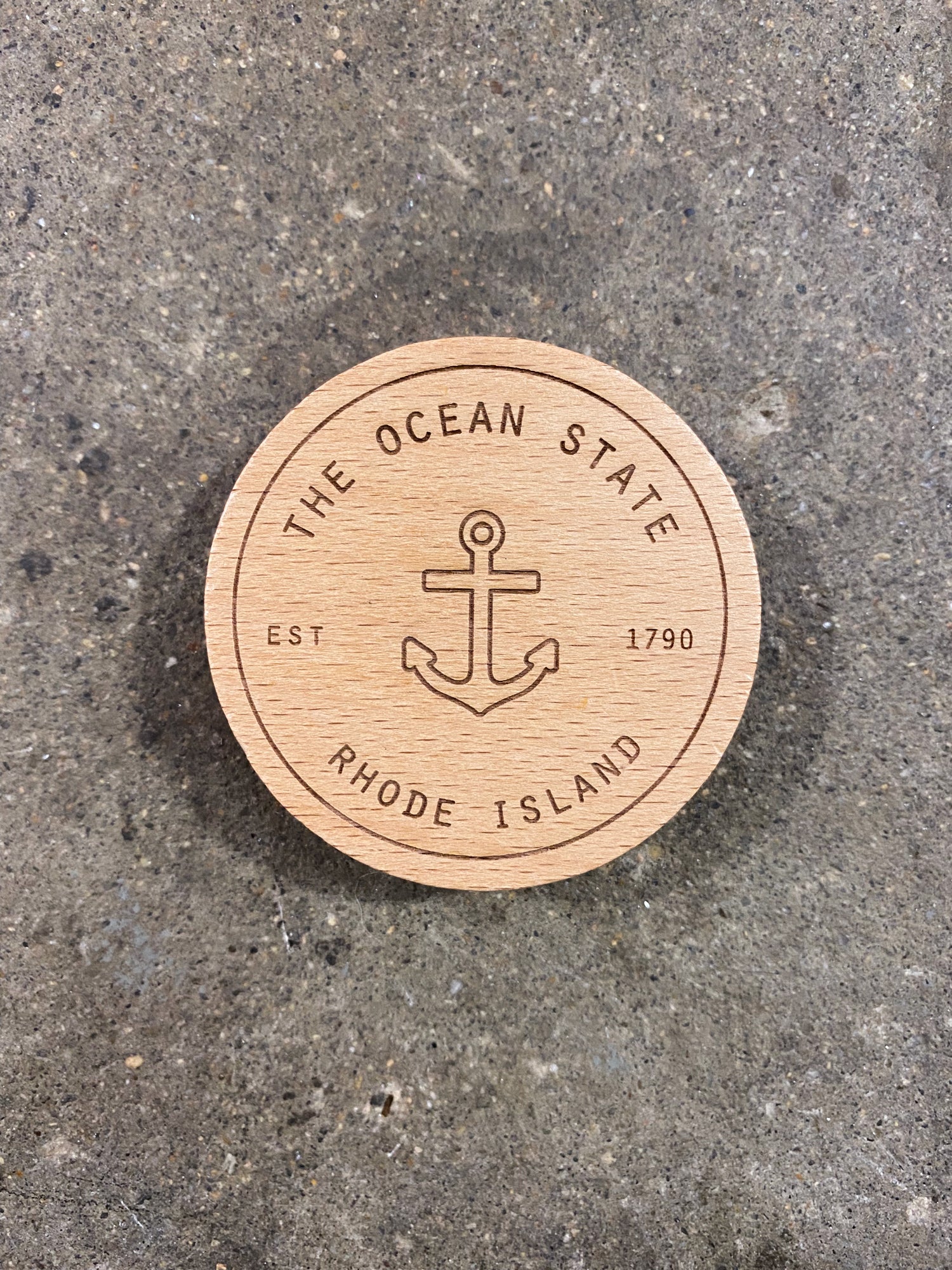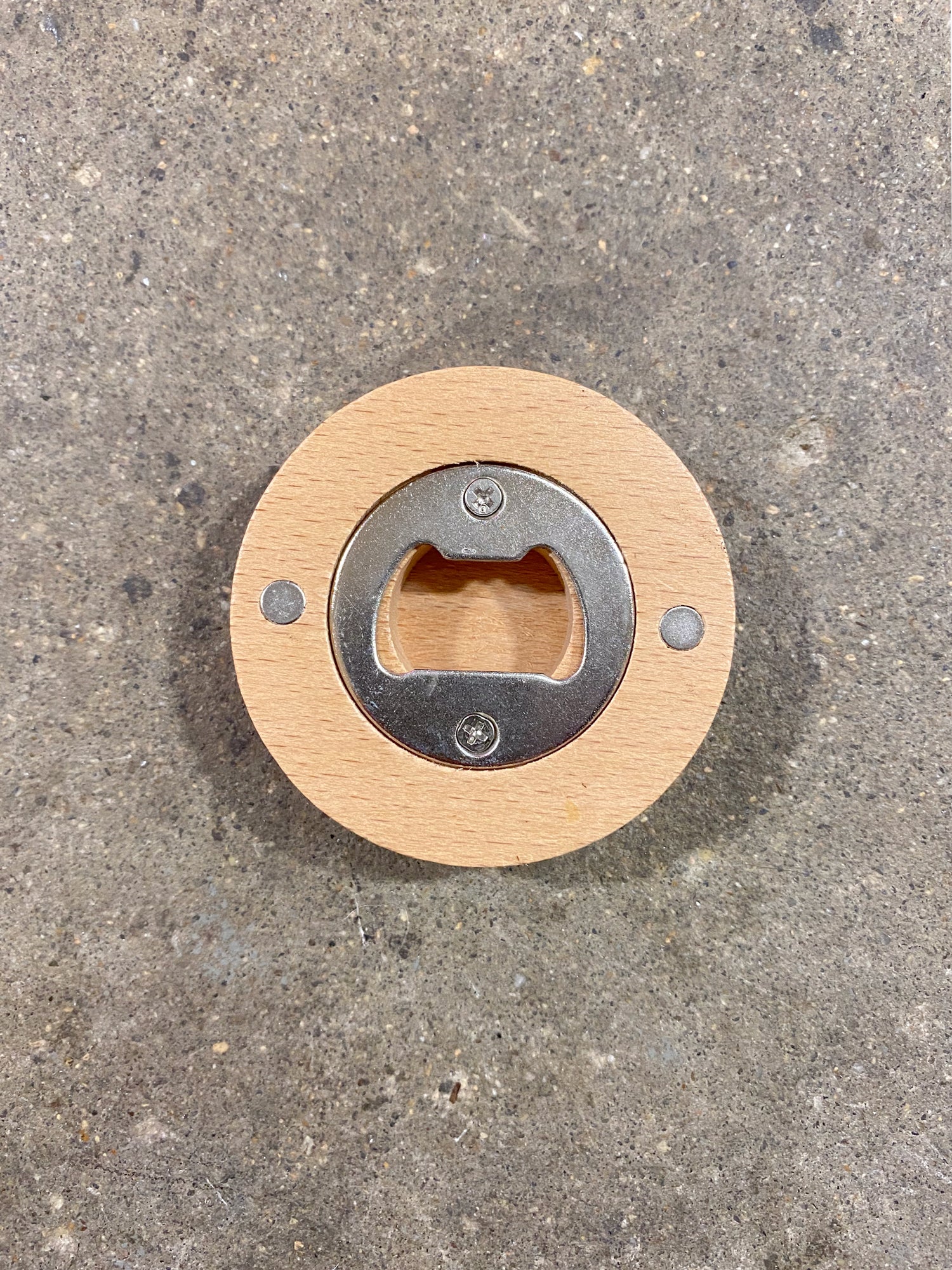 High quality beechwood engraved on the the front with a bottle opener built into the back along with magnets to have it on display and ready to go.