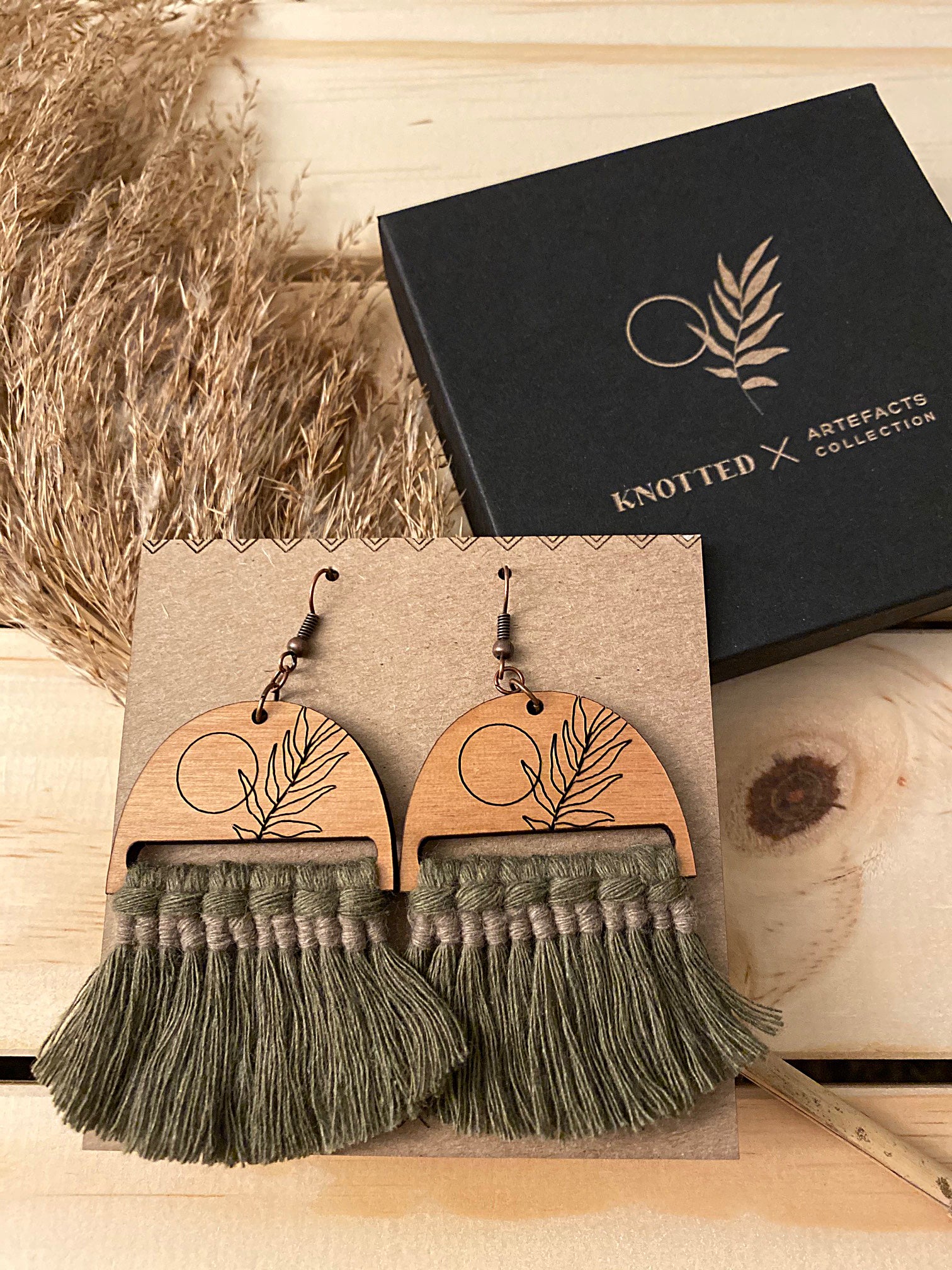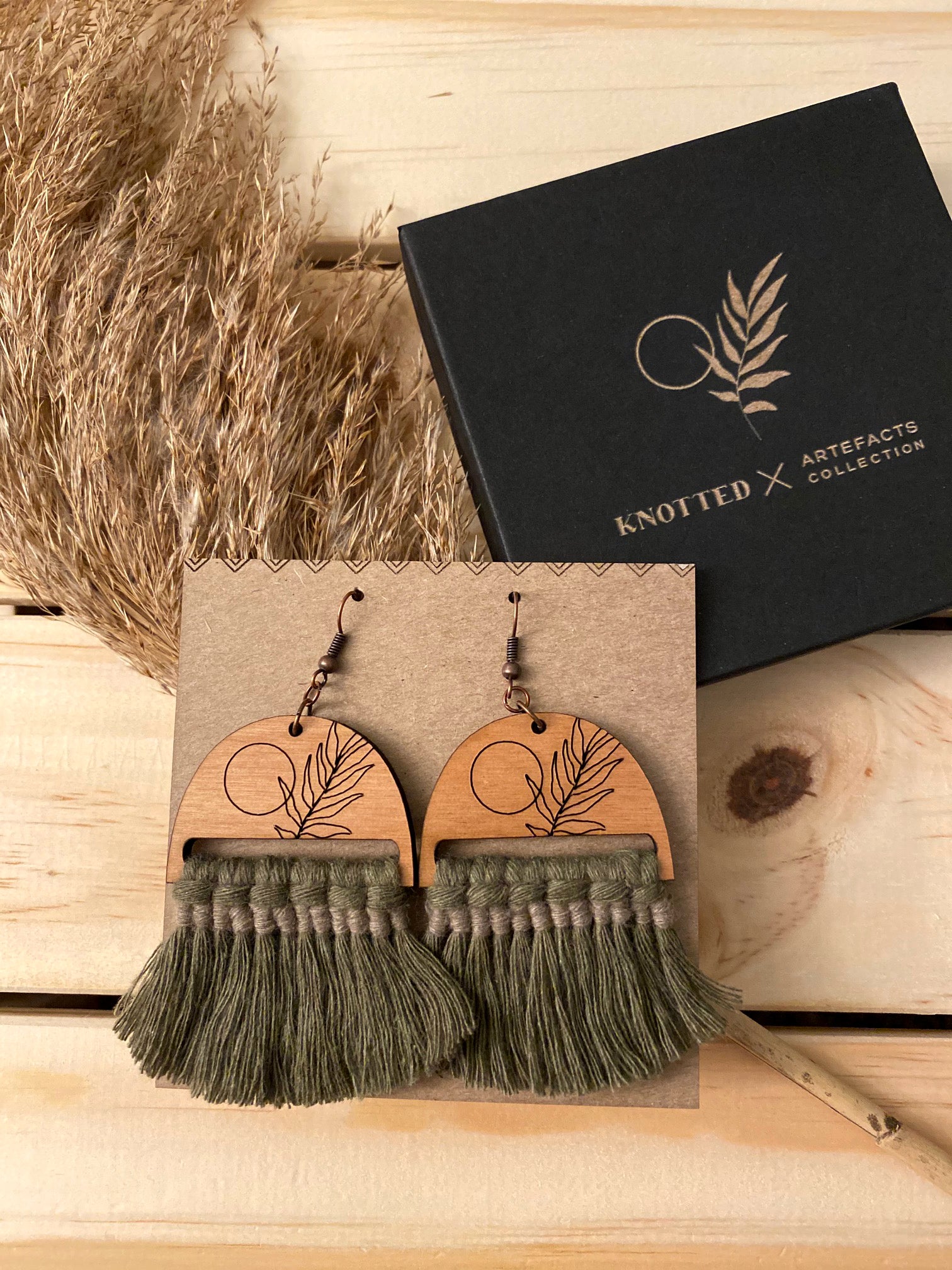 A special collaboration between Knotted's Meena Bey, a polymer clay and macramé artist, and Artefacts Collection's Sarah Tomasso, a jewelry and lasercutting designer.