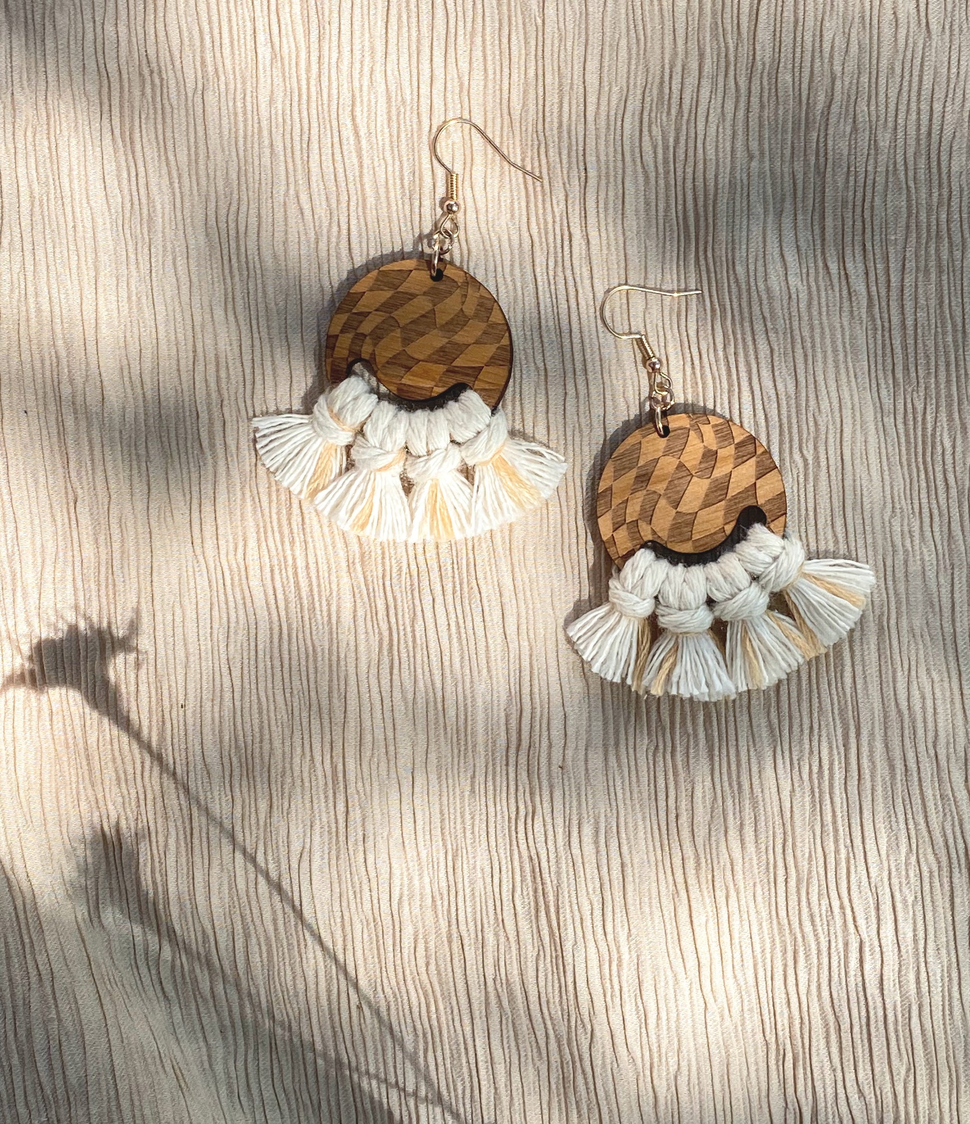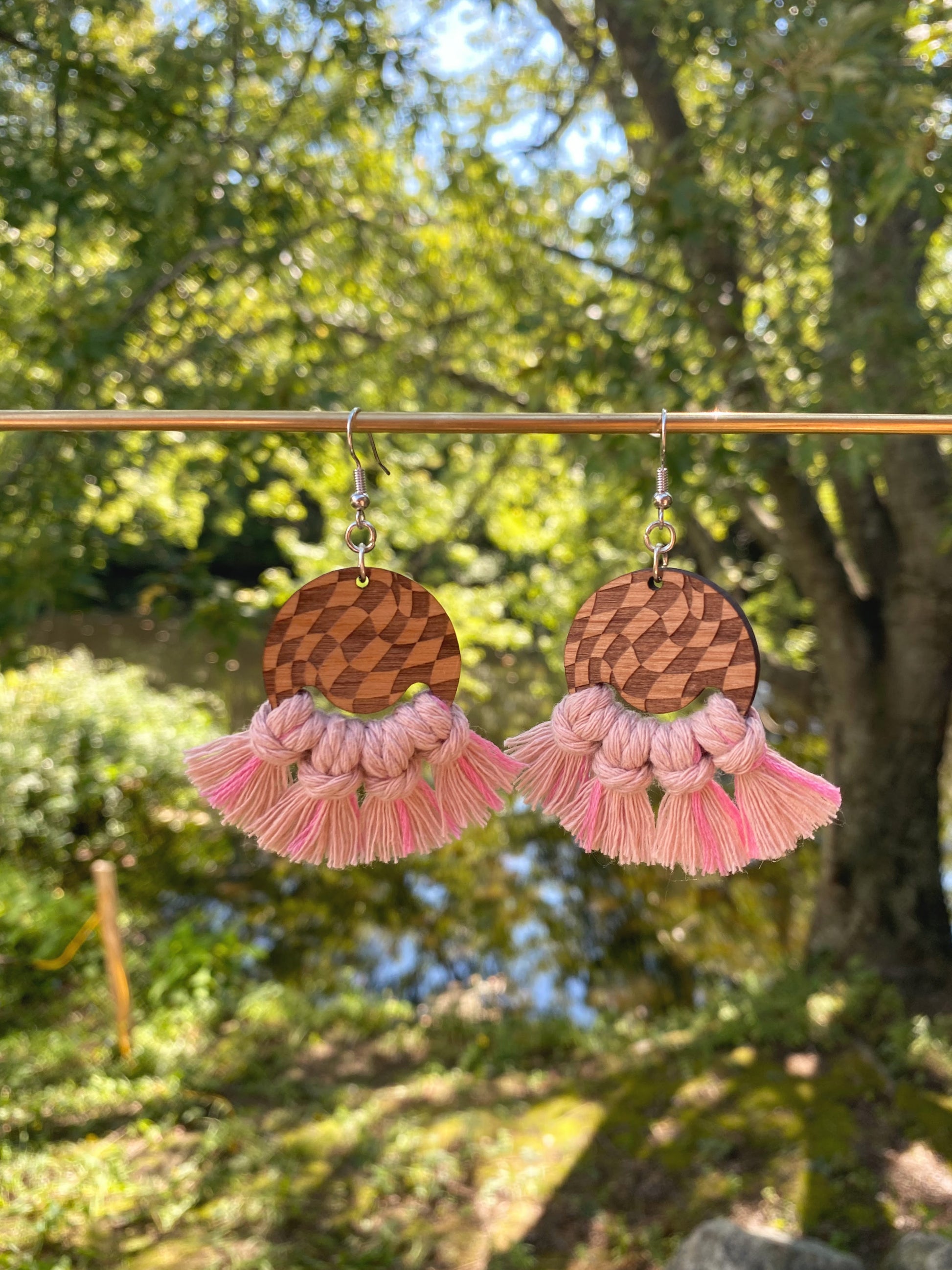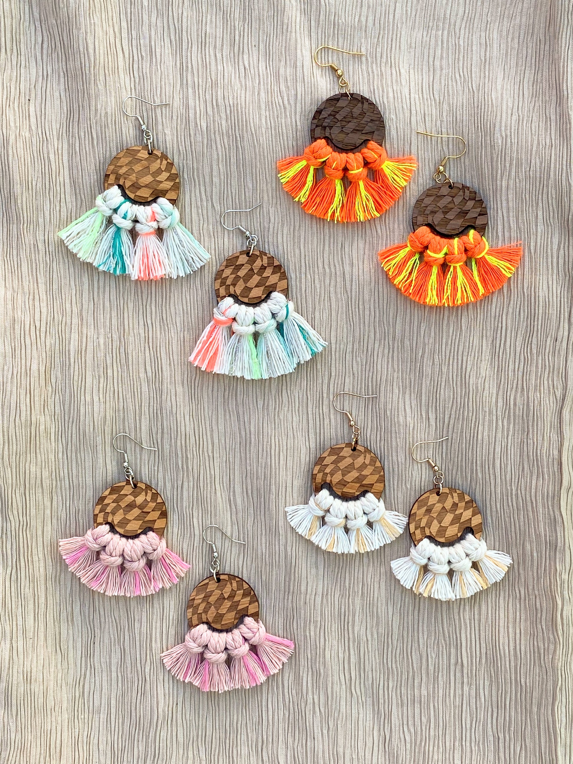Wooden portion for all Checkered Disco earring diameter measures 1.25", length of Macrame varies.