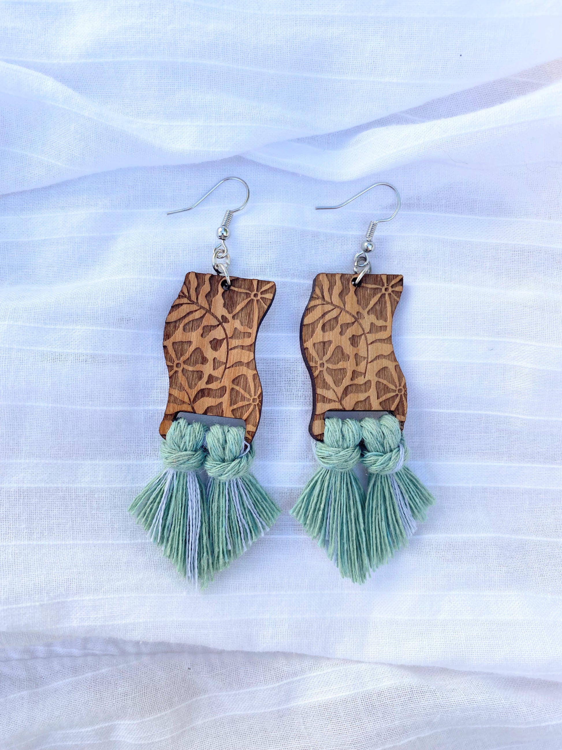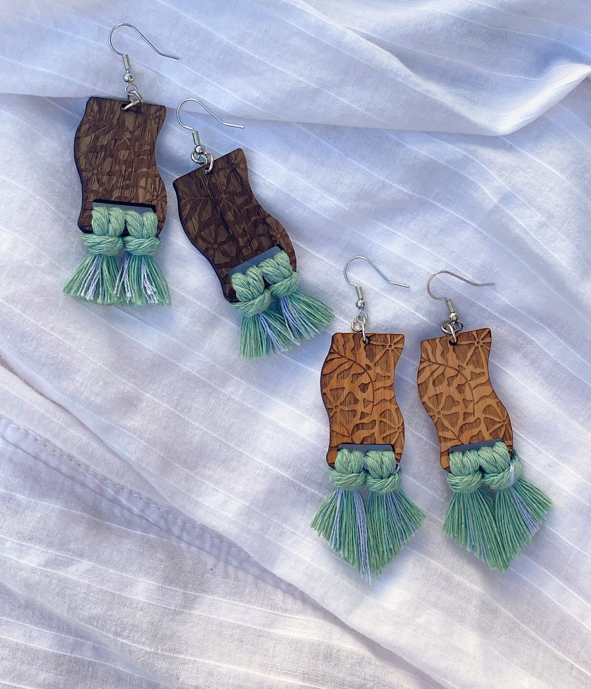 Wooden portion for all Wildflower earrings measure 1" x 1.5", length of Macrame varies.